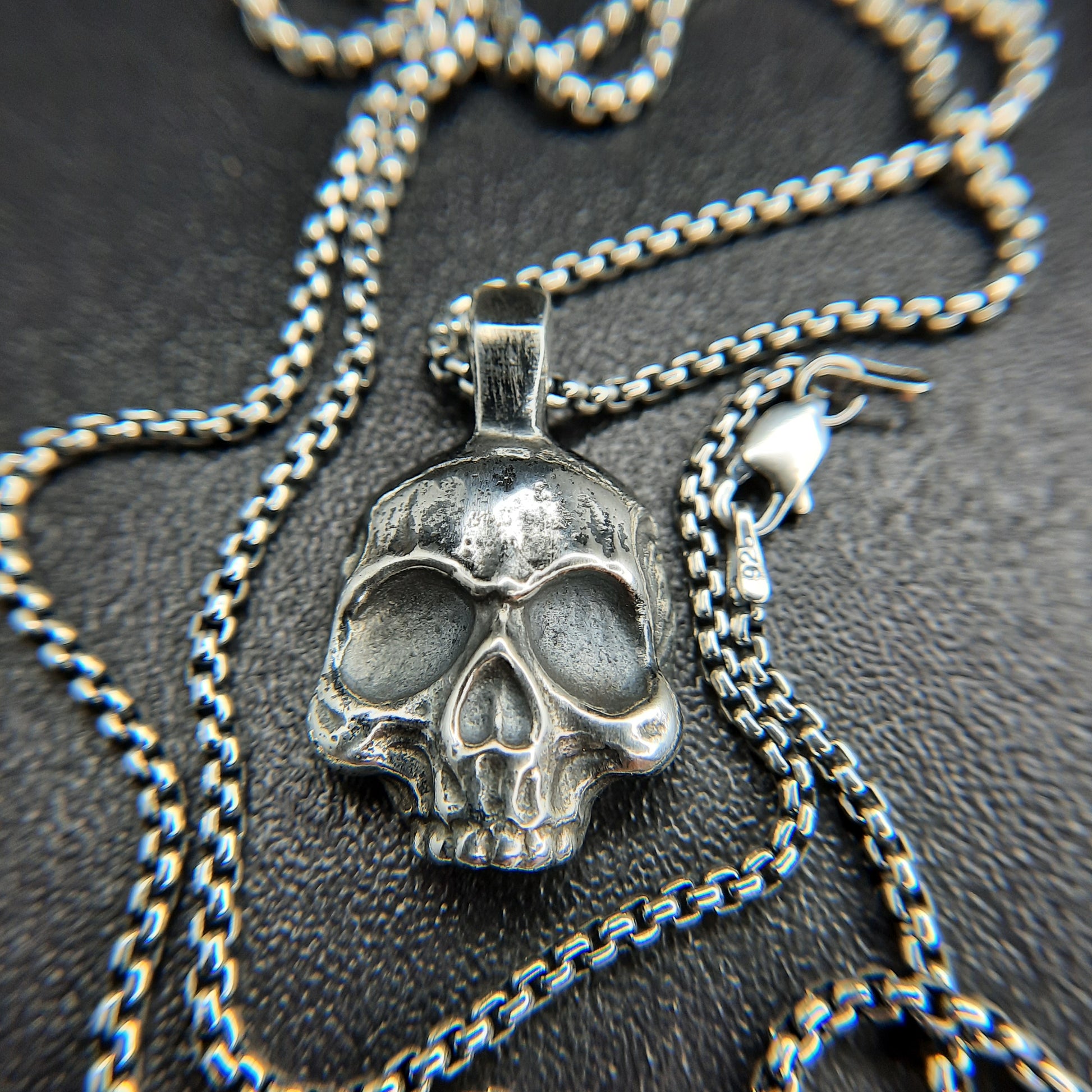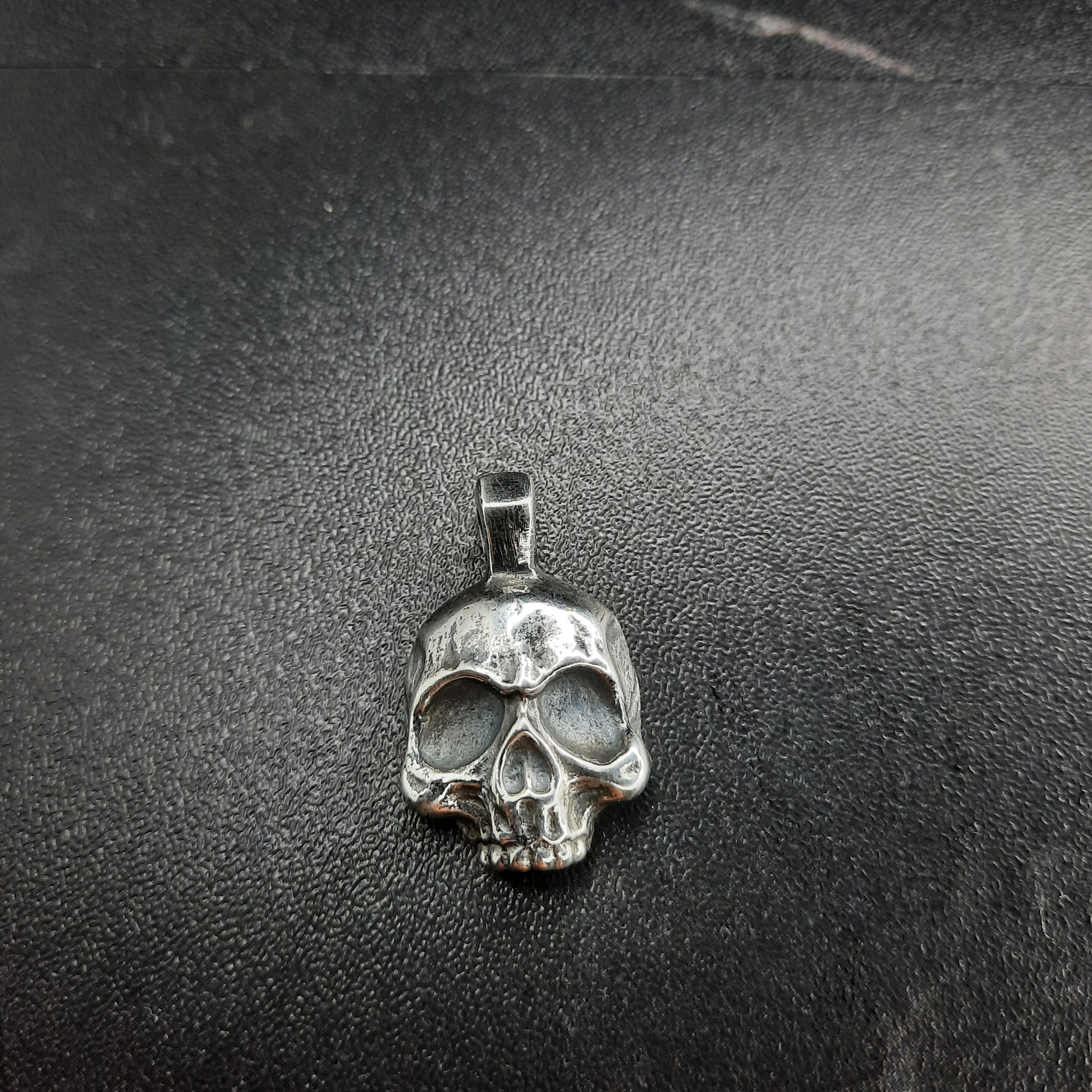 A Classic Half Skull Pendant with a Polished finish. Smaller Stature with a Big Attitude. Add this you Your Collection toady.